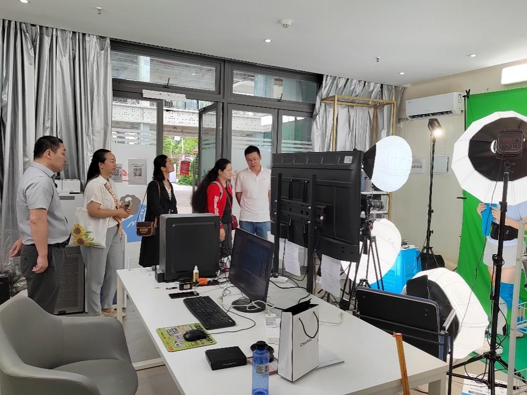 调研期间,刘岱院长一行实地考察了重庆工程学院电商直播实训基地,深入各直播实训室观摩学生实时直播操作,详细了解基地场地布局、设备配置、功能分区及日常运营管理机制,并就实践教学与直播场景深度融合的具体做法进行现场交流。