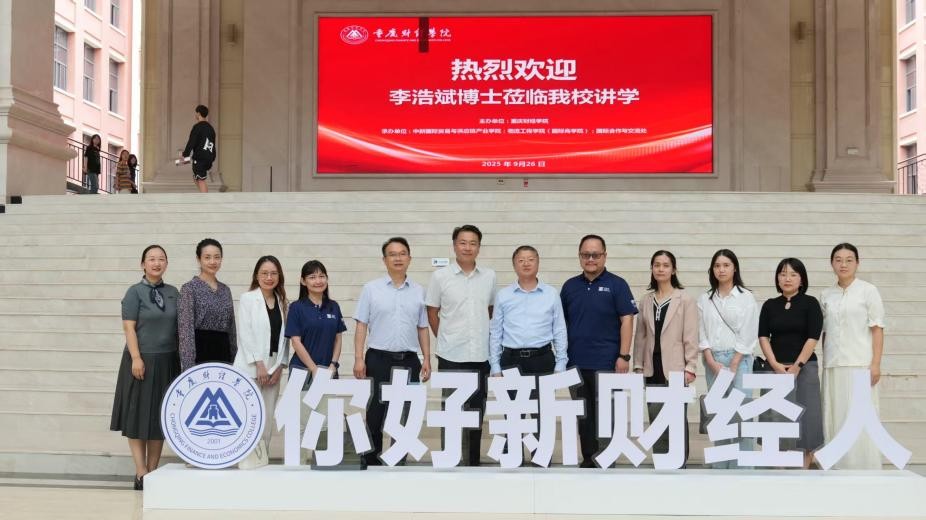 2025年9月26日下午,我校中新国际贸易与供应链产业学院(以下简称产业学院)在1220智慧教室顺利举行“全球供应链与航运发展及其人才应对”讲座。讲座特邀新加坡国立大学专家学者李浩斌博士担任主讲,中新互联互通(重庆)物流发展有限公司总经理金文迅、副总经理王成华等企业代表,新加坡国立大学海事研究中心副主任许冰冰,校长吴华安,物流工程学院(国际商学院)、国际合作与交流处等相关负责人,产业学院卓越人才班、MSc MTM项目意向学生参加讲座。讲座由物流工程学院(国际商学院)院长刘岱主持。