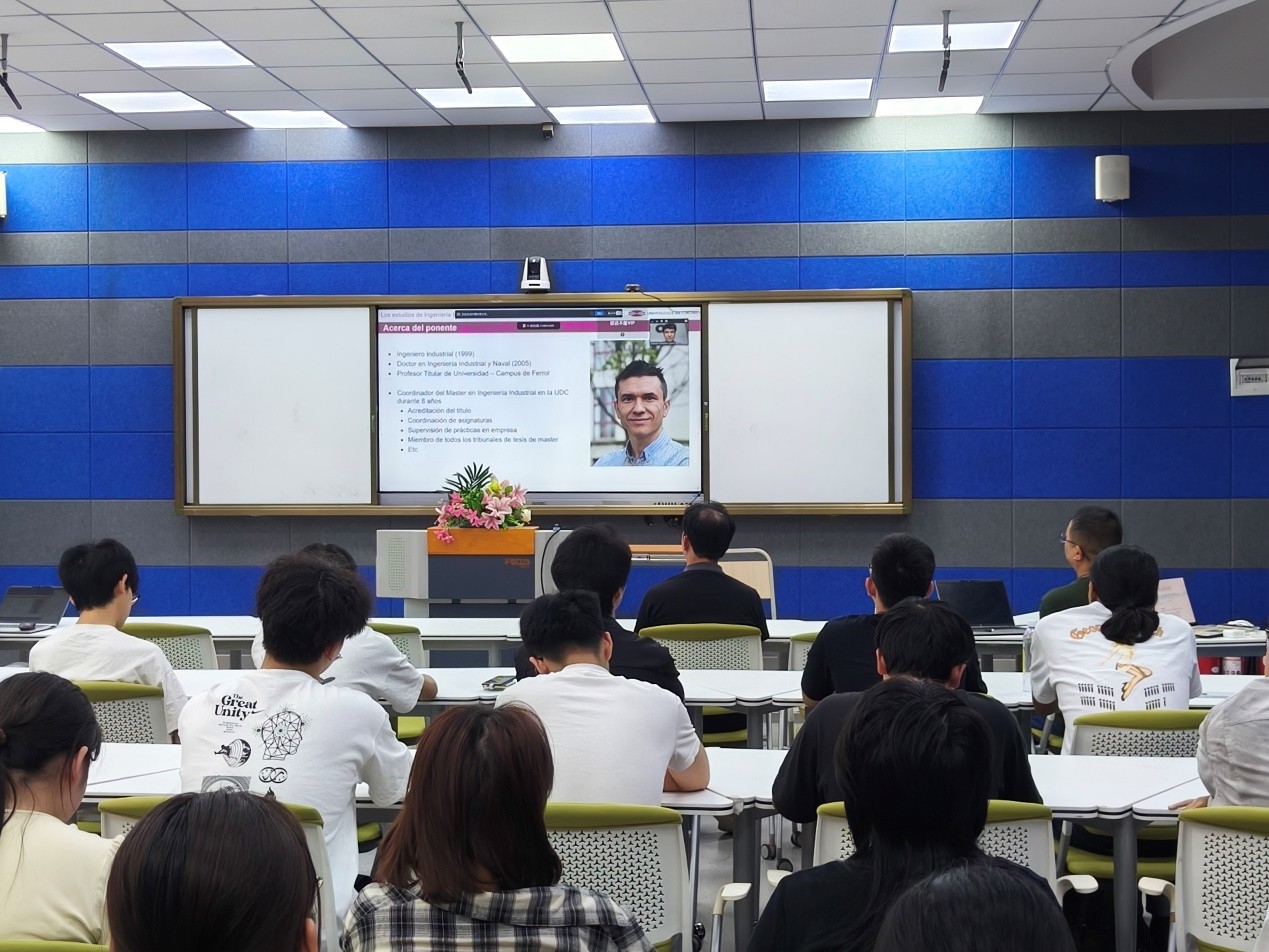 西班牙拉科鲁尼亚大学教授Manuel Jesús González线上参会,聚焦国际合作详解中外合作办学项目,寄语学生以专业学习促成知行转化,为新生明确出国深造准备方向。