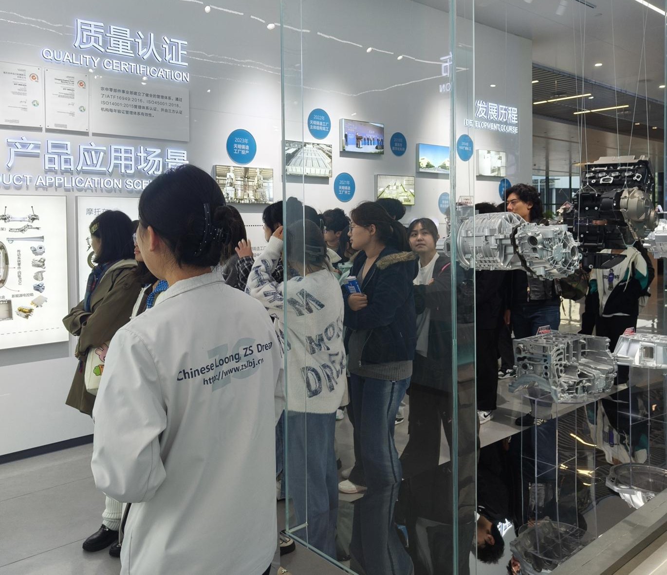 活动开始,企业高级工程师黄志勇老师带领学生参观企业展厅,系统讲解宗申动力“精良智造”发展历程与产业布局。随后在压铸智能车间,学生实地观摩模具生产维护、原料仓储转运、熔炼压铸及后期处理全流程,近距离接触280吨至3000吨级压铸设备与自动化生产线。随后的“智能制造专题讲座”中,黄老师结合企业年产2万吨铝合金铸件的实践经验,解析行业技术趋势。在最后的互动环节中企业导师和同学们进行了深入的沟通和交流,同学们积极提问,互动氛围热烈。