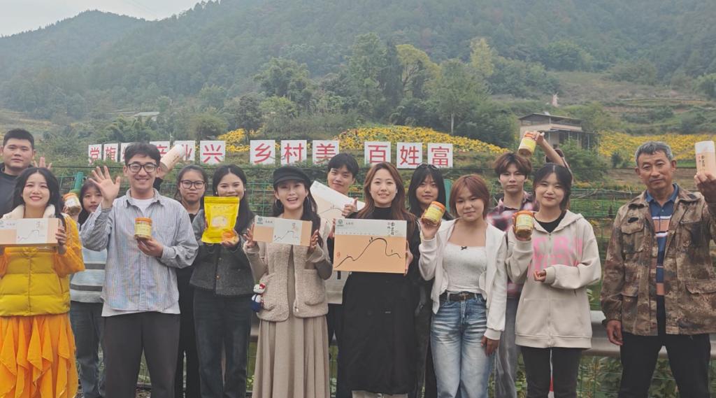 为深入贯彻落实乡村振兴战略部署,充分发挥党建引领作用与新媒体传播优势,11月4日,2025年巴南区“党建引领·百村振兴”网络名人公益行暨中小V帮带活动在东温泉镇圆满落幕。我院靳嘉昕同学作为核心直播成员参与其中,聚焦黄金林村爱媛橘开展助农直播,以青春风采与专业表现为乡村振兴注入鲜活力量。