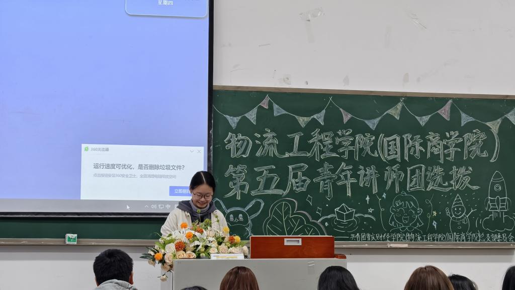 为进一步夯实青年马克思主义者培养工程的育人根基,选拔政治坚定、理论扎实、表达流畅的青年骨干讲师,11月13日下午17:20,重庆财经学院物流工程学院(国际商学院)第五届青马工程讲师选拔初赛在1414教室顺利举行。