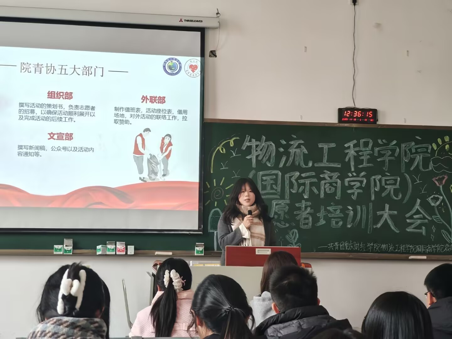 青春志愿添亮色,文明奉献暖人心。为提升我院志愿者队伍专业素养与实践能力,促进我校志愿服务工作的发展,物流工程学院(国际商学院)“物小志”青年志愿者分会于11月19日12:30在教学楼1620教室,成功举行2025-2026学年志愿者培训大会。