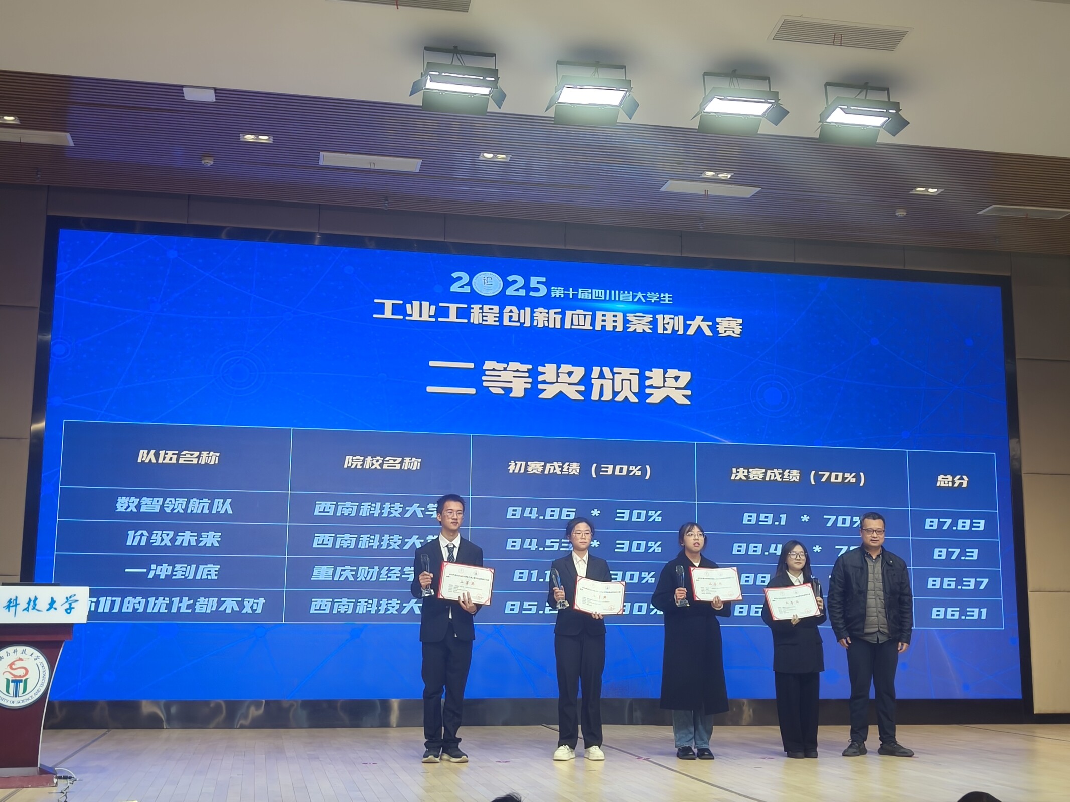 近日由四川省教育厅主办,西南科技大学承办的第十届四川省大学生工业工程创新应用案例大赛圆满收官。我校物流工程学院(国际商学院)23级工业工程专业的刘庆、罗清、李滟霜、黄秋红、张越五位同学组成的参赛团队,在指导教师李先冲的全程陪同与指导下以“实践+创新”的方向斩获大赛二等奖,其创新的表演性展示形式更是给现场评委老师们留下了深刻印象。