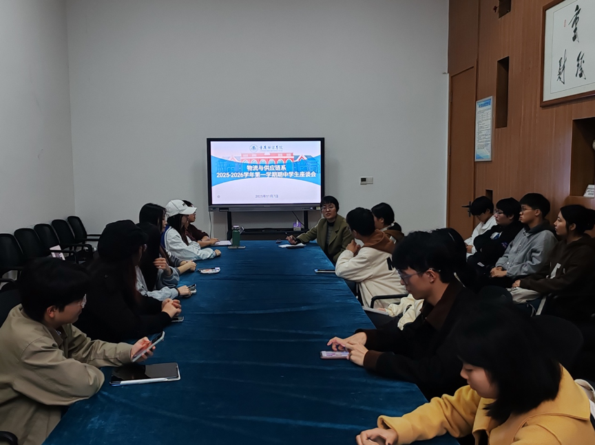 为进一步落实“新财经”建设要求,强化学风建设,提升教学质量,2025年11月7日,物流与供应链系在图书馆大研讨室组织召开2025-2026学年第一学期期中教学检查师生座谈会。物流与供应链系主任岳晓娟、系副主任何承香,专业教师白雪及各年级学生代表共同参会,围绕教师授课、教学设施、课程设置、学习生活等方面展开了深入交流。