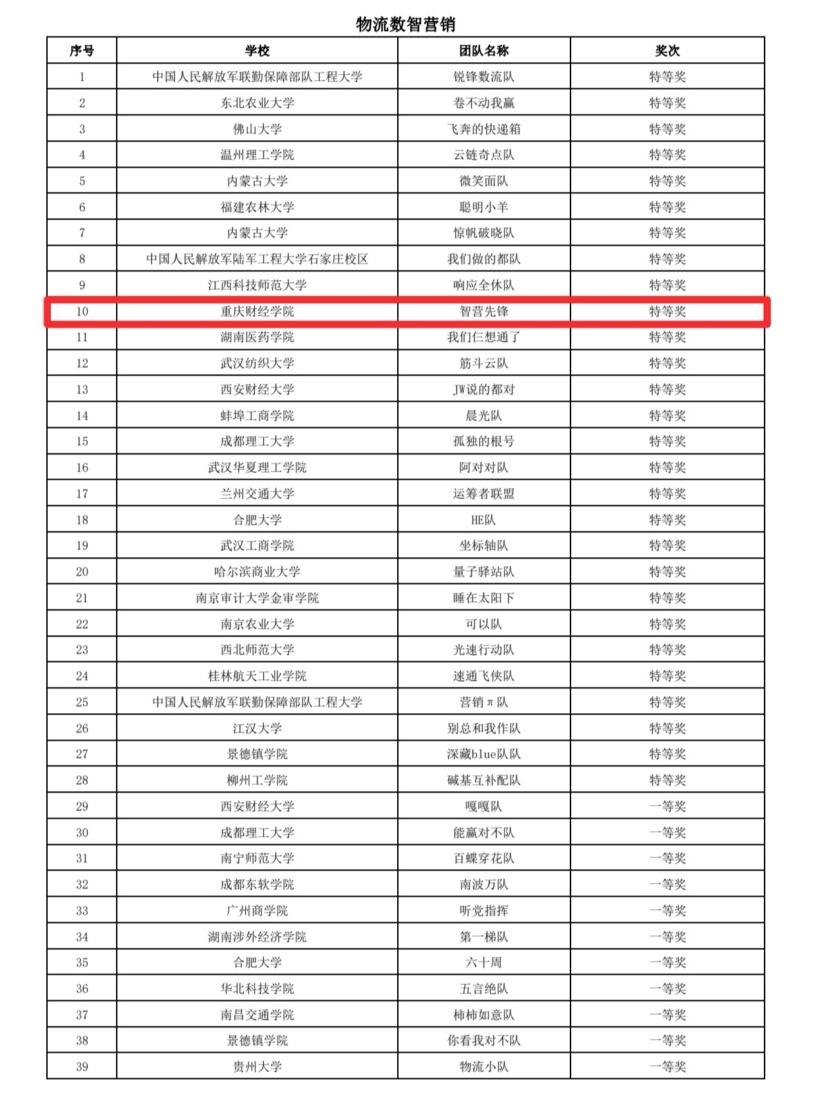 总决赛采用 “线上省级联赛+线上总决赛”团体赛制,对团队实战、数据分析及方案展示能力要求严苛。我校团队凭借扎实功底,在运营实战对抗中最终以89.278分的总分位居全国物流数智营销赛道第十名,斩获本科组特等奖,创下本专业参赛以来最佳成绩,实现历史性突破。