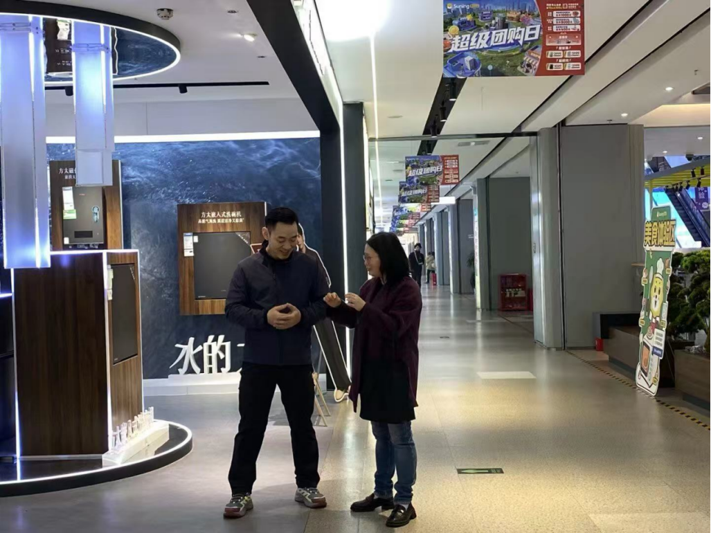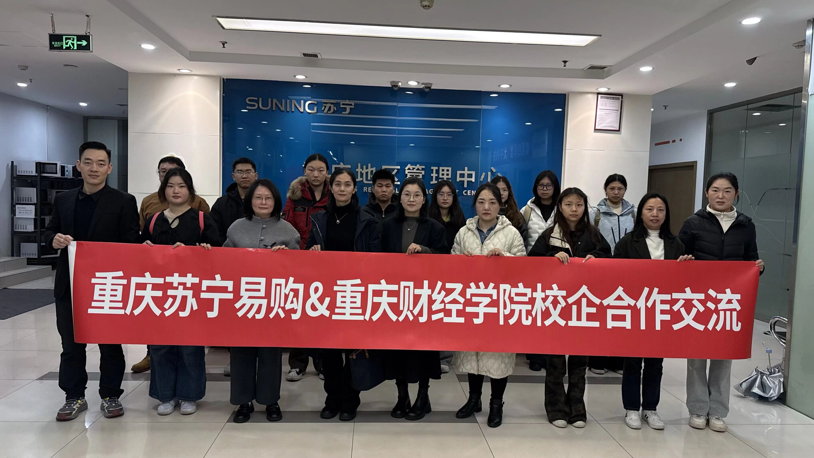 2025年12月3日,物流工程学院(国际商学院)院长刘岱、电子商务系主任彭子洋、专任教师刘蕊、张生锦等带领七名电商专业学生代表,赴重庆苏宁易购解放碑店开展校企合作交流暨电商运营管理实践活动以及对中高层深度访谈。苏宁易购相关负责人王代文经理热情接待了校方一行,学院毕业生代表、企业实习生代表共同参会。双方围绕深化院校合作、推动产教融合落地、拓展合作项目等议题深入洽谈,为后续全方位合作奠定坚实基础,携手开启校企协同育人新篇章。
