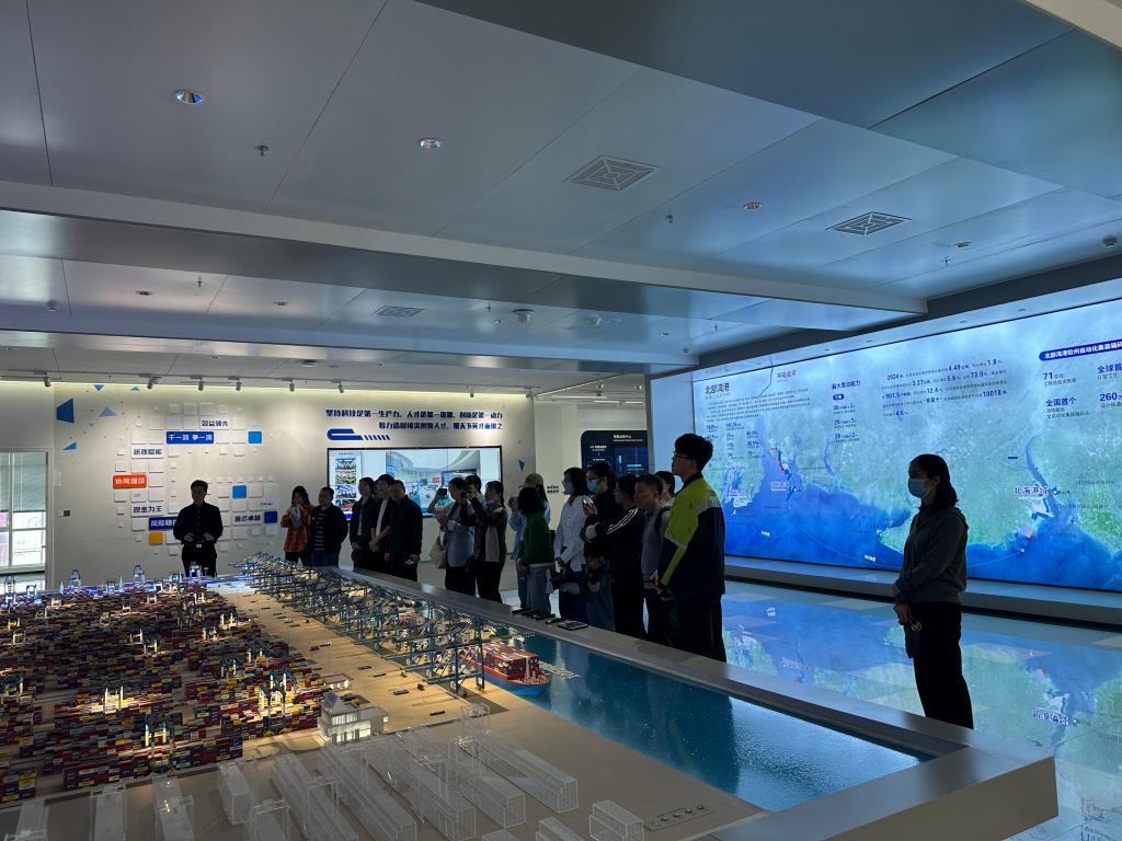 考察团首站抵达钦州铁路集装箱中心站及自动化码头,作为陆海新通道海铁联运的关键节点,钦州港以其高效的多式联运体系和智能化的港口运营模式,生动展现了“一带”与“一路”在此无缝衔接的现实图景。教师们详细了解了港口的设施布局、作业流程、信息化建设以及与重庆等内陆地区开行的班列组织情况。在与港口管理人员的交流中,双方就物流枢纽功能优化、智慧物流技术应用、复合型物流人才培养等议题进行了深入探讨。