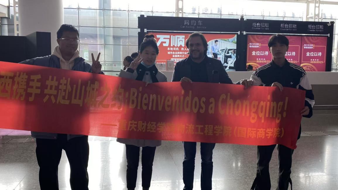秋意正浓时,一场跨越国界的教学与文化邂逅在校园温情上演。12 月 6 日,重庆财经学院师生代表满怀热忱前往机场,以一句亲切的 “Hola” 迎接西班牙外教 IVÁN,为为期两周的跨国交流之旅拉开序幕。返程途中,学生们化身 “文化使者”,细致介绍学校办学理念、校园文化及当地人文特色,双向的好奇与互动,为后续文化交融埋下美好伏笔。