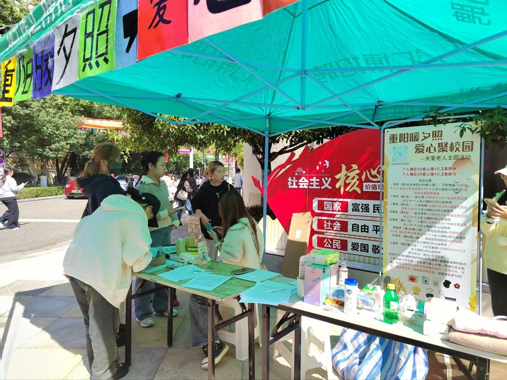10月24日,在“物小志”青年志愿者分会的推动下线上活动正式启动。同学们纷纷举起手机,认真捕捉与主题相关的温暖瞬间,并郑重写下对长辈的祝福寄语。一幅幅照片、一句句心声,生动传递出志愿者们对老年群体的真挚关怀。10月27日至28日,活动延伸至财经的绿茵操场上,同学们踊跃捐出牙刷、毛巾等老年人需要的生活物品,工作人员细心分类、登记,将原本普通的物品汇聚成了一股暖流。在专设的摊位上,这些物资被有序转化为实实在在的关怀资源。这次活动不仅在实际行动中为老人送去切实的温暖,而且也进一步增强了作为志愿者的社会责任感。