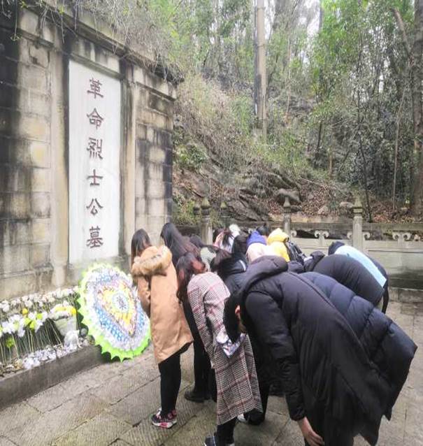 在革命烈士纪念碑前,全体人员肃立、默哀,向烈士三鞠躬,深切悼念革命先烈。全体人员合唱国歌,大家被高亢激昂、豪迈奋进的歌声所感染,心中不由升起对革命先烈的崇敬之情,增强了继承先烈遗志的使命意识和维护社会稳定的坚定决心。秦杰同志作为发展对象代表进行发言,他说:“我们今天的美好生活来之不易,都是先辈们用生命和鲜血换来的,大家应该好好珍惜。同时,作为当代新青年,更是不能忘记伟大的革命先烈们,我们要传承先烈精神,争做社会主义接班人。”