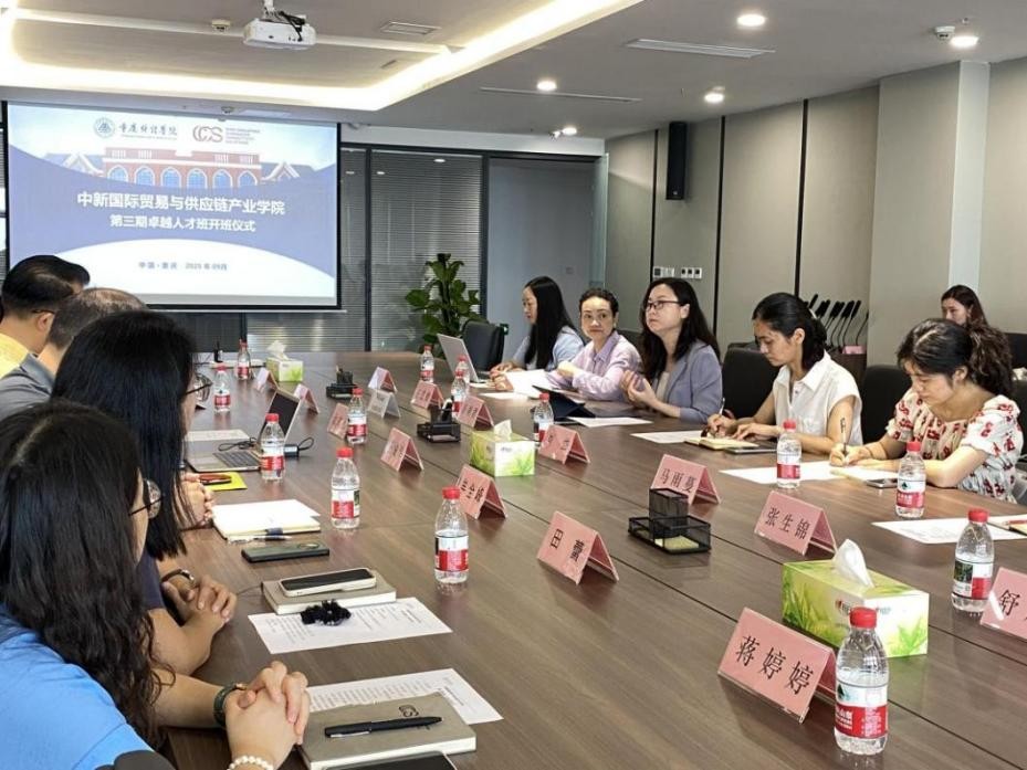 9月18日上午,中新国际贸易与供应链产业学院第三期卓越人才班开班仪式在中新(重庆)多式联运示范基地成功举办。中新互联互通(重庆)物流发展有限公司总经理金文迅、副总经理王成华、高级战略经理余平及相关负责人,重庆财经学院党委副书记房朝君、物流工程学院(国际商学院)院长刘岱、党总支副书记王艺燃、副院长李占凤以及师生代表参加活动。本次开班仪式标志着校企合作协同育人进入新阶段,为进一步深化产教融合、培养符合国际物流与供应链行业需求的高素质应用型人才奠定坚实基础。